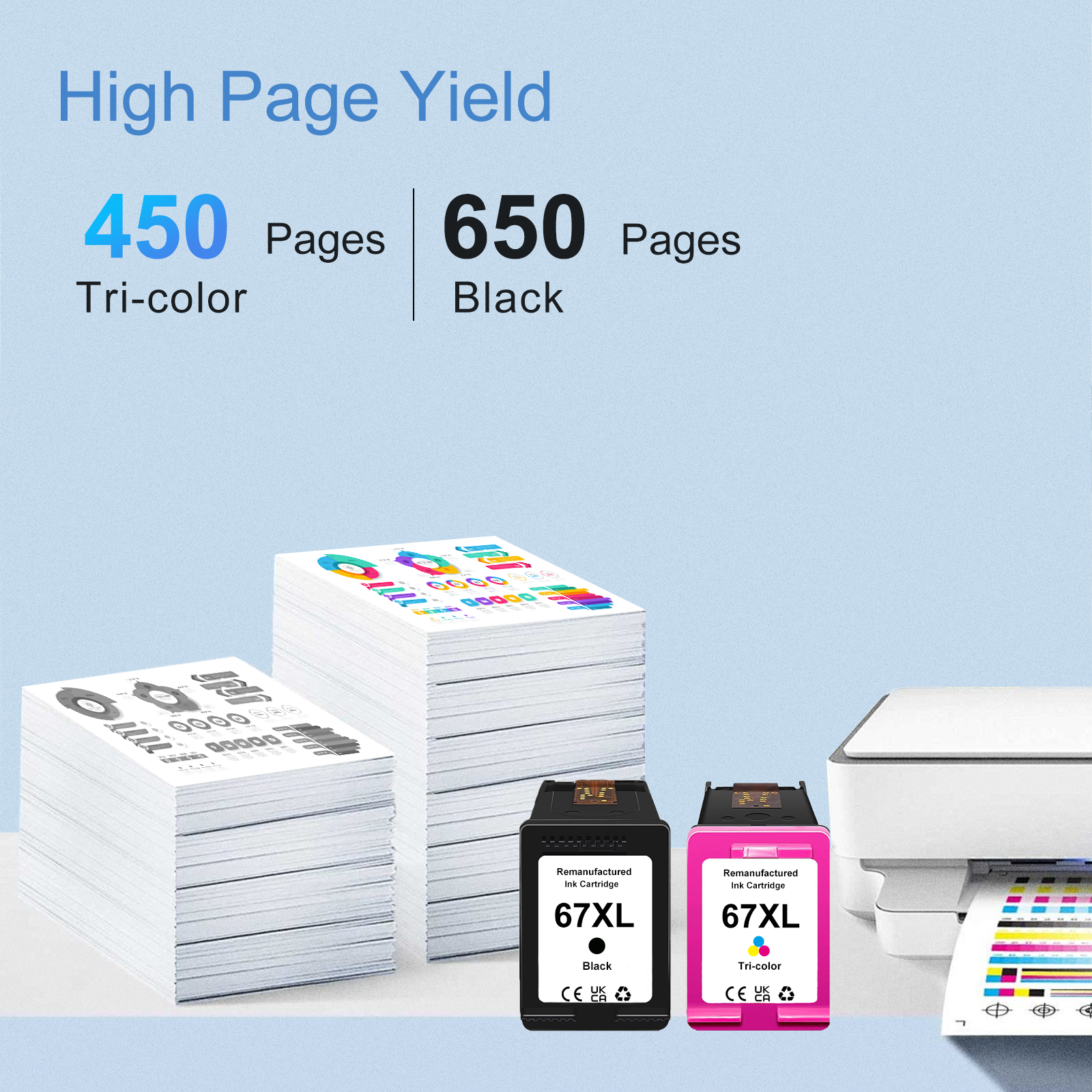 67XL Ink for HP 67 Ink Cartridge for HP Ink 67 for HP DeskJet 2700 2700e 2752 2752e 2755 2755e Envy 6000 6055 6055e Printers (Black, Tri-color)